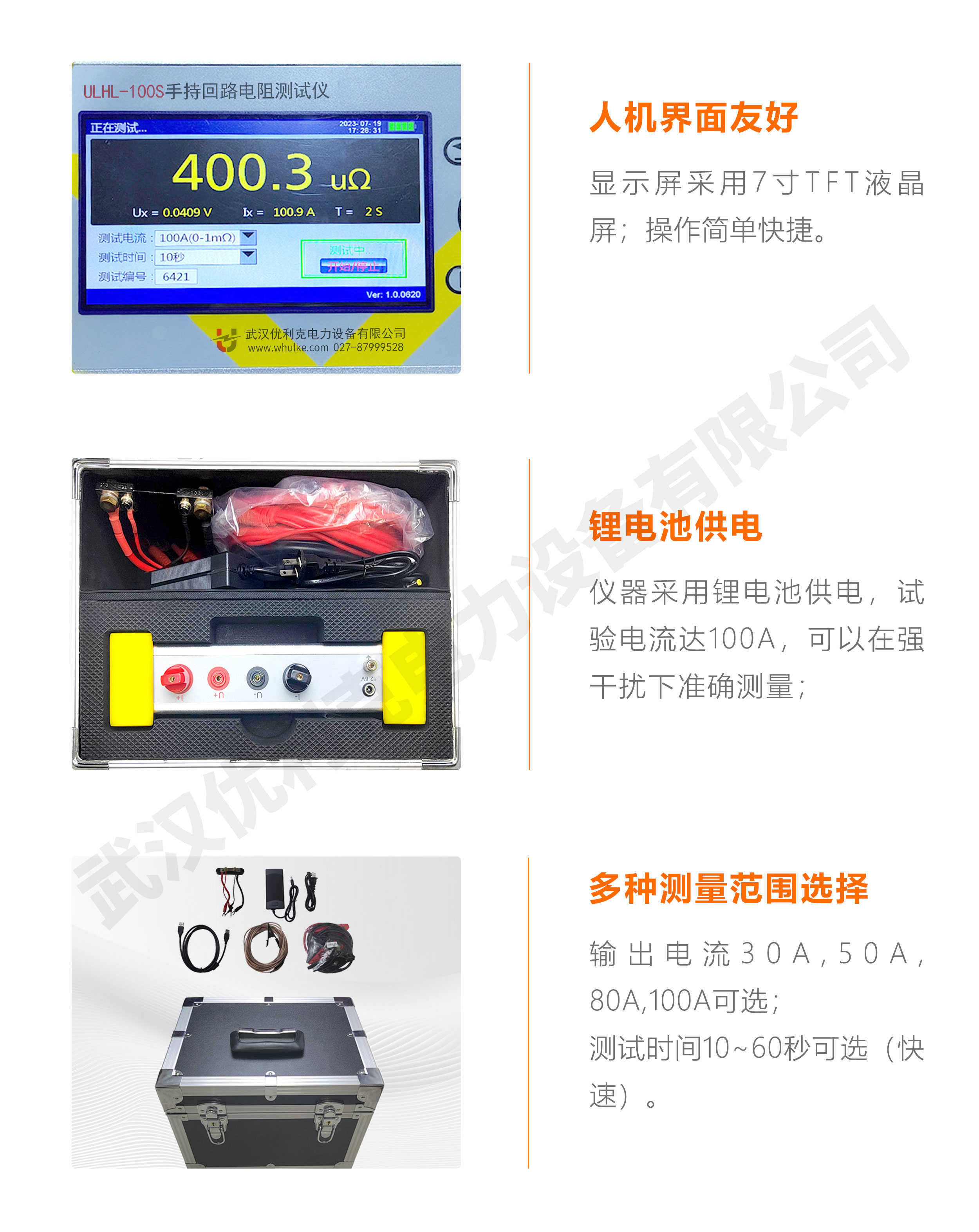 ULHL-100S手持回路電阻測(cè)試儀,用于開(kāi)關(guān)觸點(diǎn)的接觸電阻和其它微歐電阻的測(cè)量。儀器采用鋰電池供電,試驗(yàn)電流達(dá)100A,可以在強(qiáng)干擾下準(zhǔn)確測(cè)量。ULHL-100S為手持式儀器,體積小重量輕,特別適合現(xiàn)場(chǎng)應(yīng)用。