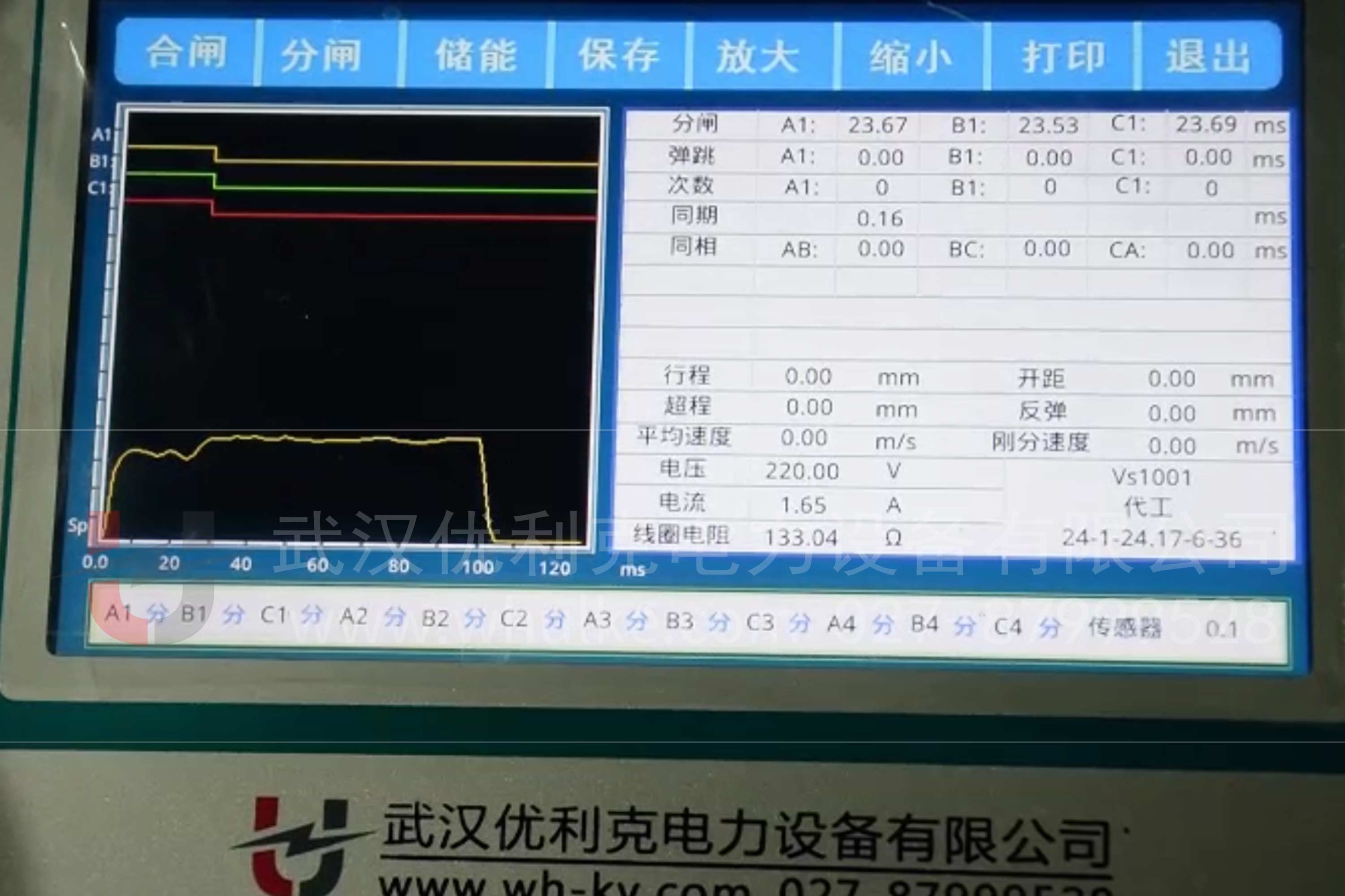 電氣參數(shù)測試:分合閘線圈通過專用測試線連接測試儀輸出端子,注意極性正確;電壓回路連接分壓器,用于監(jiān)測操作電壓。?