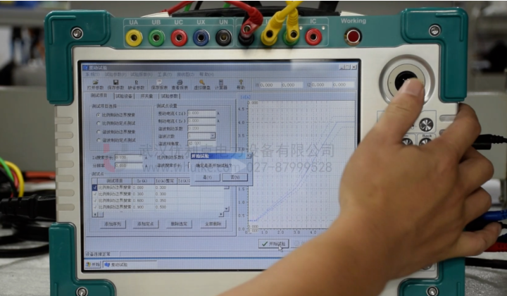 根據保護裝置的保護邏輯和實際運行情況,在測試儀上設置相應的測試參數,如差動電流、制動電流的輸出方式,諧波含量設置等。
