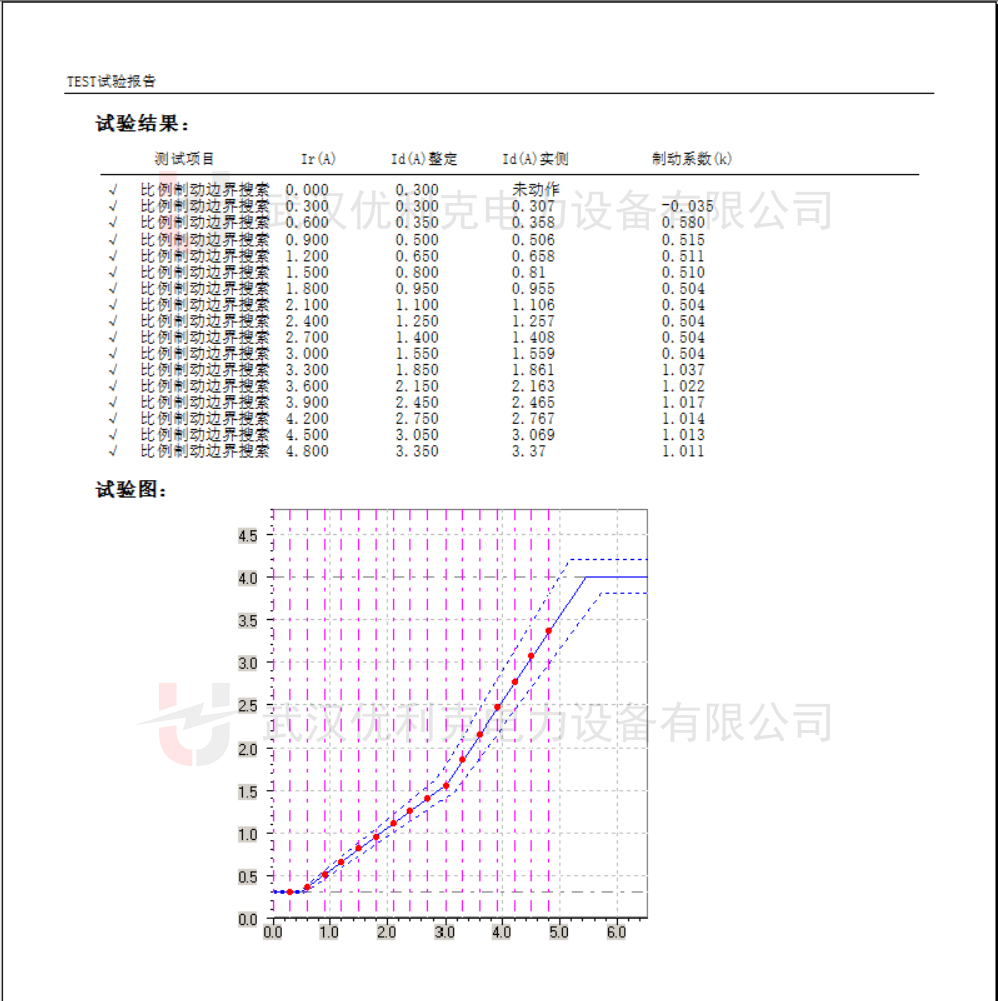 術說明書中給出的標準比率制動特性曲線進行對比,兩者應基本吻合。誤差范圍一般要求在 ±5% 以內,例如,如果標準曲線在某一